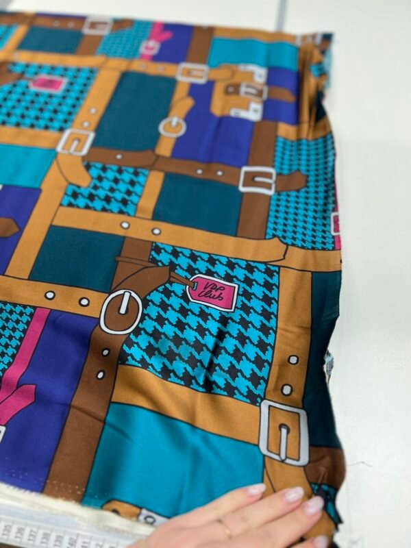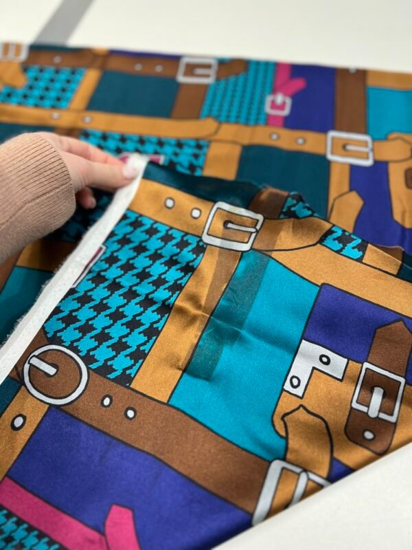 Itališkas kolekcinis satininis šilkas unikalaus dizaino su elastanu „Ralphie“ (SU BROKU) (kaina už likutį 1.5 m)