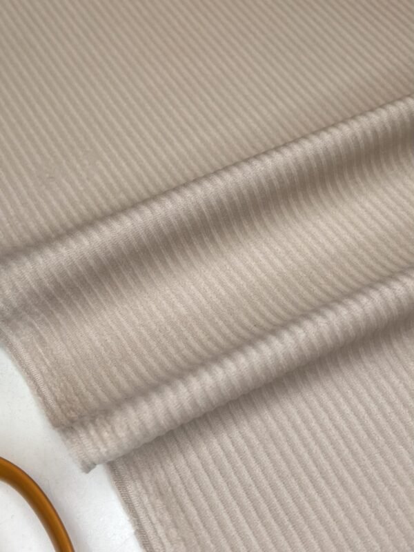Savybės: aukštos kokybės kordinis (reljefinis) velvetas su elastanu. Audinys aksominės, minkštos tekstūros, su švelniai iškiliu paviršiumi, kuris suteikia audiniui natūralų blizgesį ir švelnumo pojūtį.